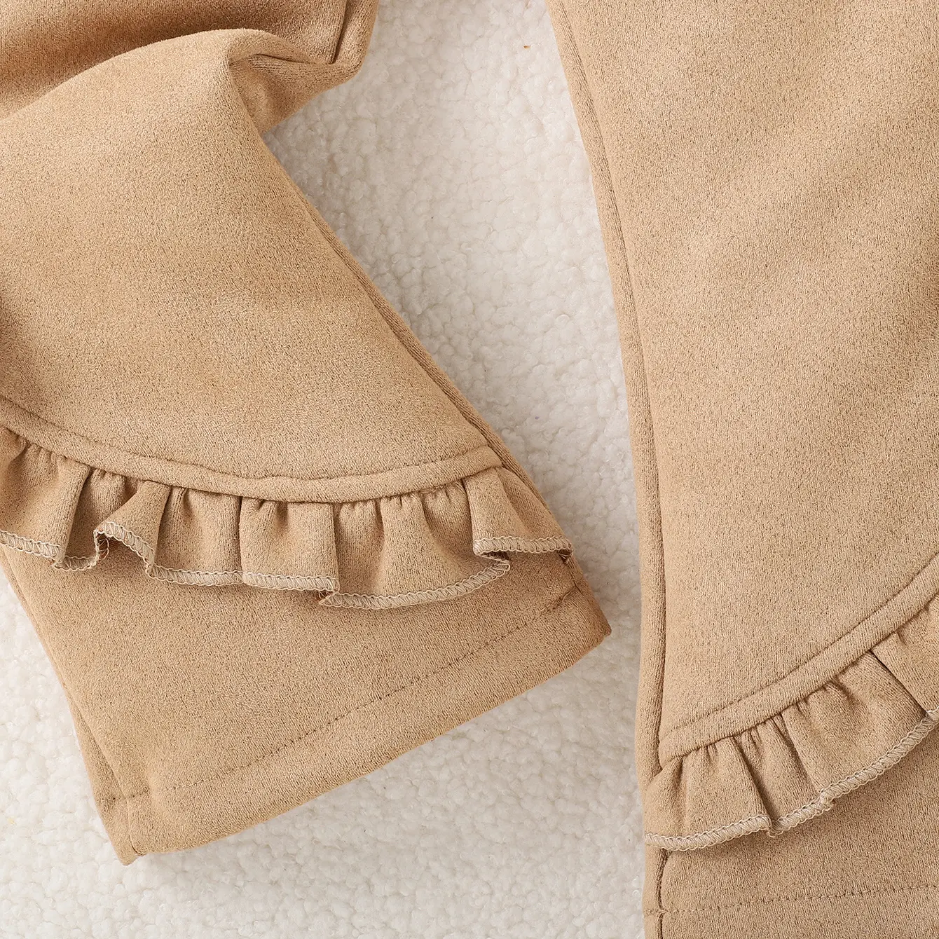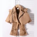 Autumn Casual Style Girls’ Clothing Set Fashion Khaki Lapel Flying Sleeve Cardigan Jacket Pants Children’s Clothing