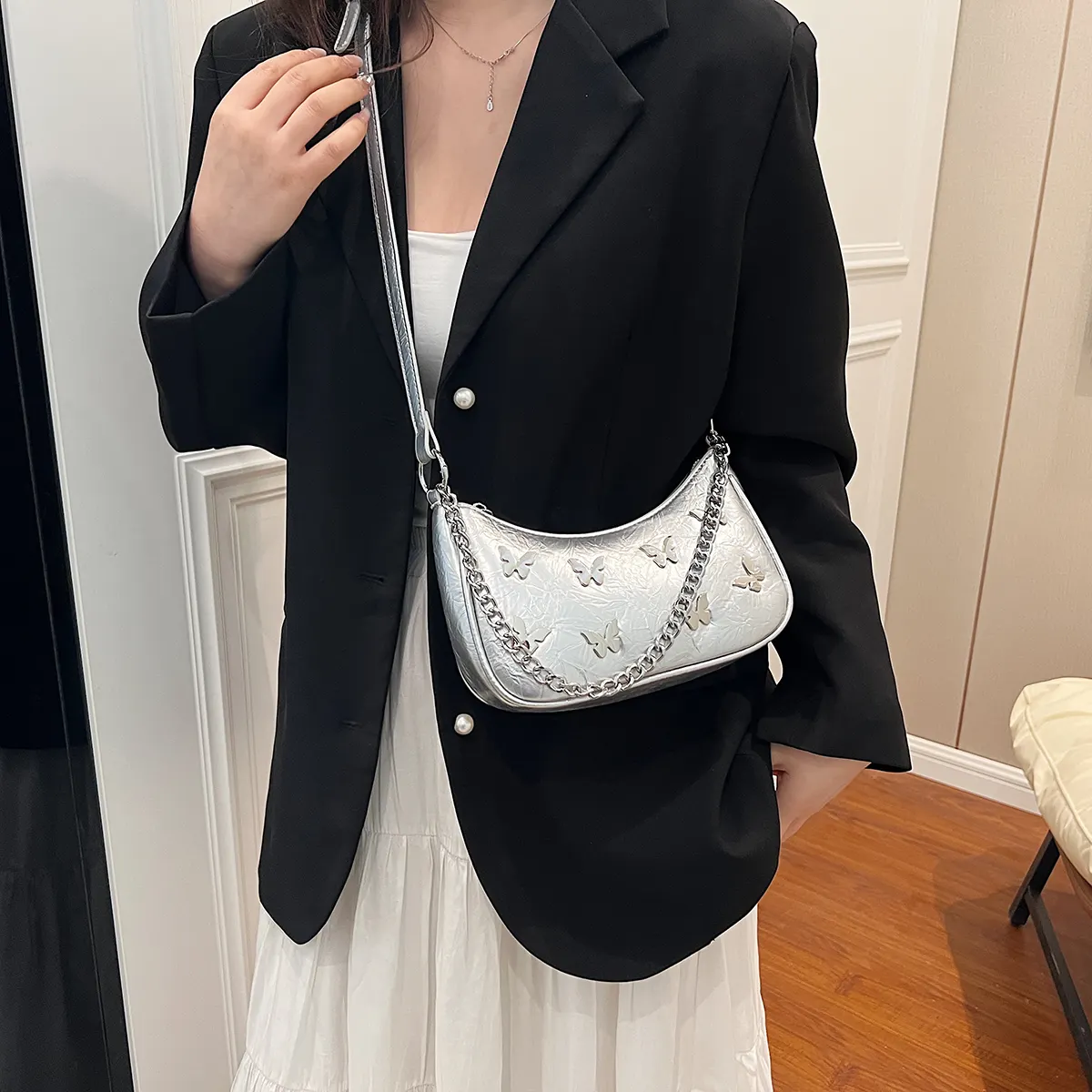 Knitted Fabric Vintage Underarm Chain Handbag Crossbody Bag Lady High Quality Beautiful Bag Design Shoulder Bag For Women