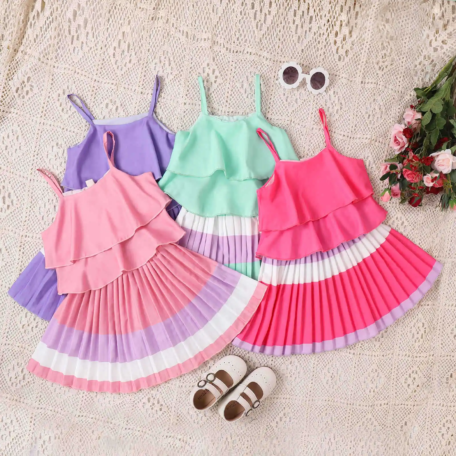 Baby girl clothes boutique clothing summer two piece latest sleeveless casual dress strapless frock girl clothing set