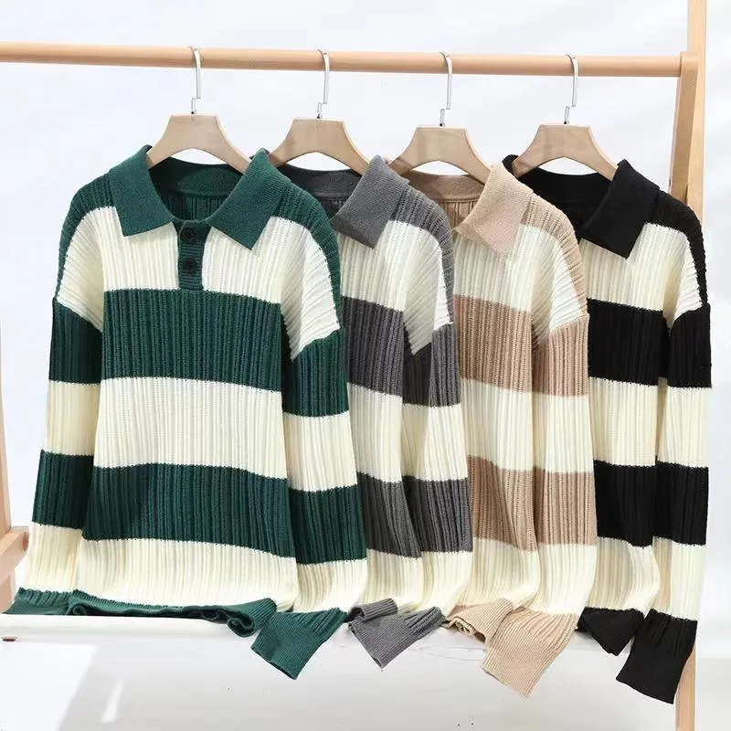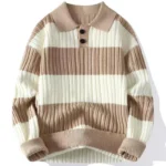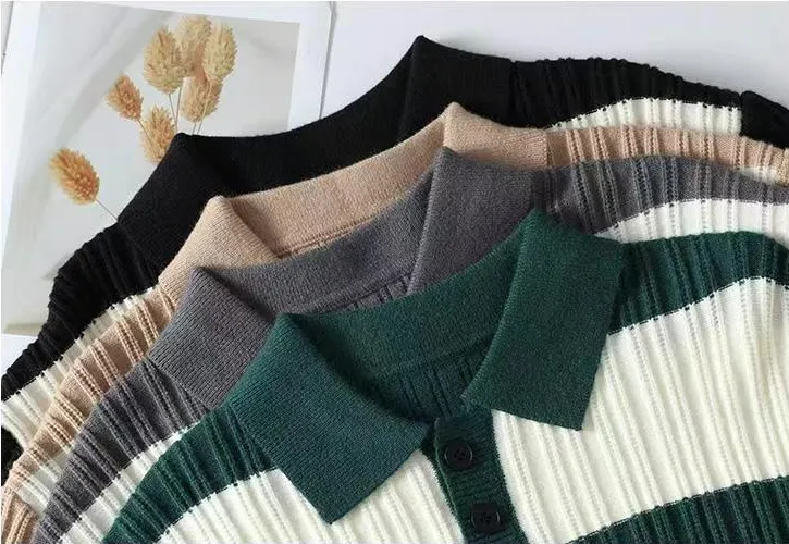 Men’s lapel button intermittently colored half open chest sweater can be customized with label decoration